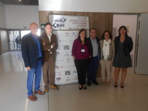En el centro, Manuel Agulló, presidente de APAEX Elche y Mª Trinidad Rodríguez, psicóloga de APAEX. A la derecha, Mª Teresa Maciá, concejal de bienestar social del ayuntamiento de Elche y Miriam Hurtado, vicerrectora de relaciones institucionales de la UMH. A la izquierda, Andrés Iborra, representante de la diputación provincial de Alicante y Daniel Lloret, miembro del INID y profesor de la UMH.